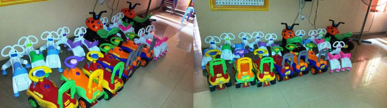 Our toy arena for the reception and nursery pupils is equipped with tricycles, go cars, rubber and fluffy dolls, picture puzzles, bicycles amongst others